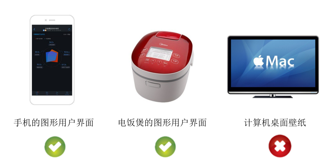 图形用户界面(简称GUI)应用领域包括:计算机、手机、电器、 仪器仪表、工业设备等。在产品显示装置上以图形方式显示的与人机交互有关的界面。