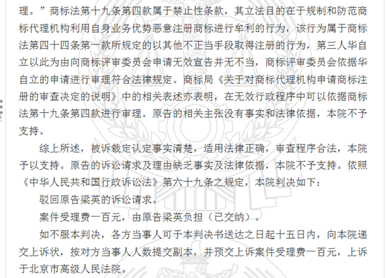 (2018)京73行初11936号北京知识产权法院行政判决书支持了商标局裁定。