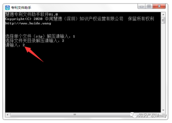 1、点击进入慧德专利文件助手,首页输入代码“2”按回车键