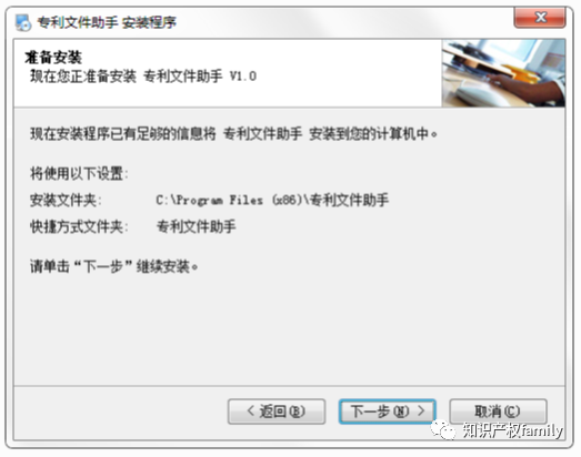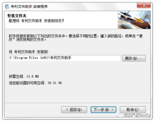 默认安装目录“C: Program Files (x86) 专利文件助手”,用户可以点击自定义目录