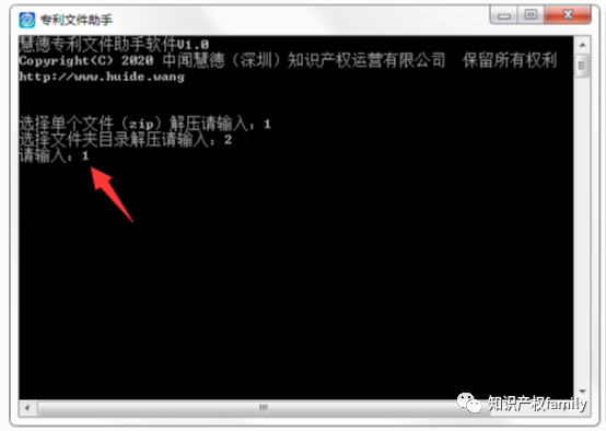 1、点击进入慧德专利文件助手,首页输入代码“1”按回车键