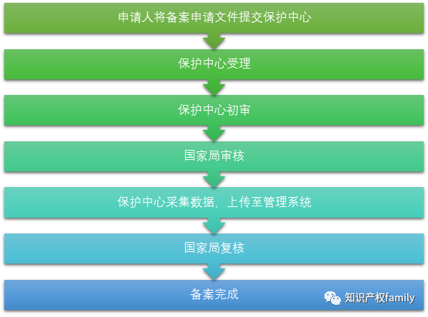 (4) 国家知识产权局资格审查通过后,保护中心将申请主体的备案资料上传至国家知识产权局系统,接受国家知识产权局的最终审核